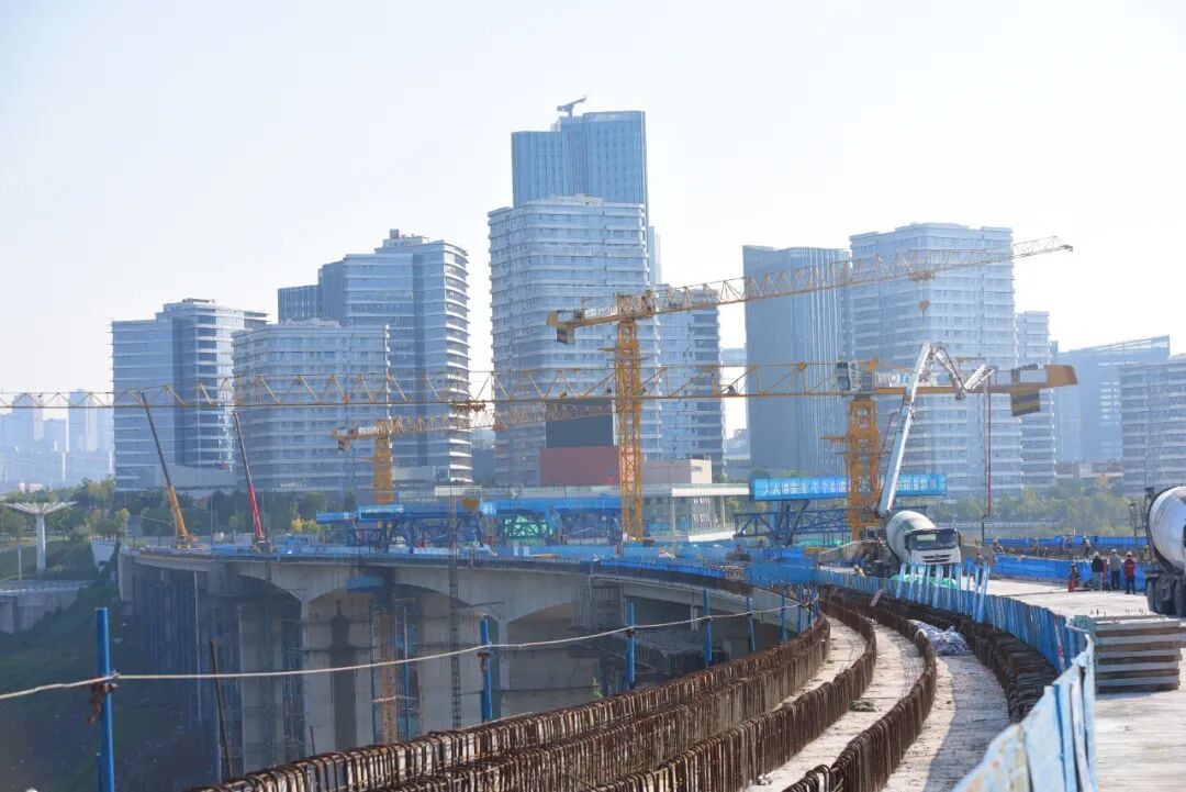 合龙后,项目将正式进入附属工程施工阶段。施工现场,塔吊不停运送着物资到作业现场,装载有混凝土的大型罐车来来回回,整个生产作业井然有序。