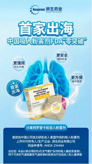 2026年1月12日(美国时间),落户于重庆两江新区水土新城的润生药业有限公司自主研发的核心产品“沙美特罗替卡松吸入粉雾剂”(Fluticasone Propionate and Salmeterol Xinafoate Inhalation Powder,药品申请号:ANDA 214464),正式获得美国食品药品监督管理局(FDA)批准上市。